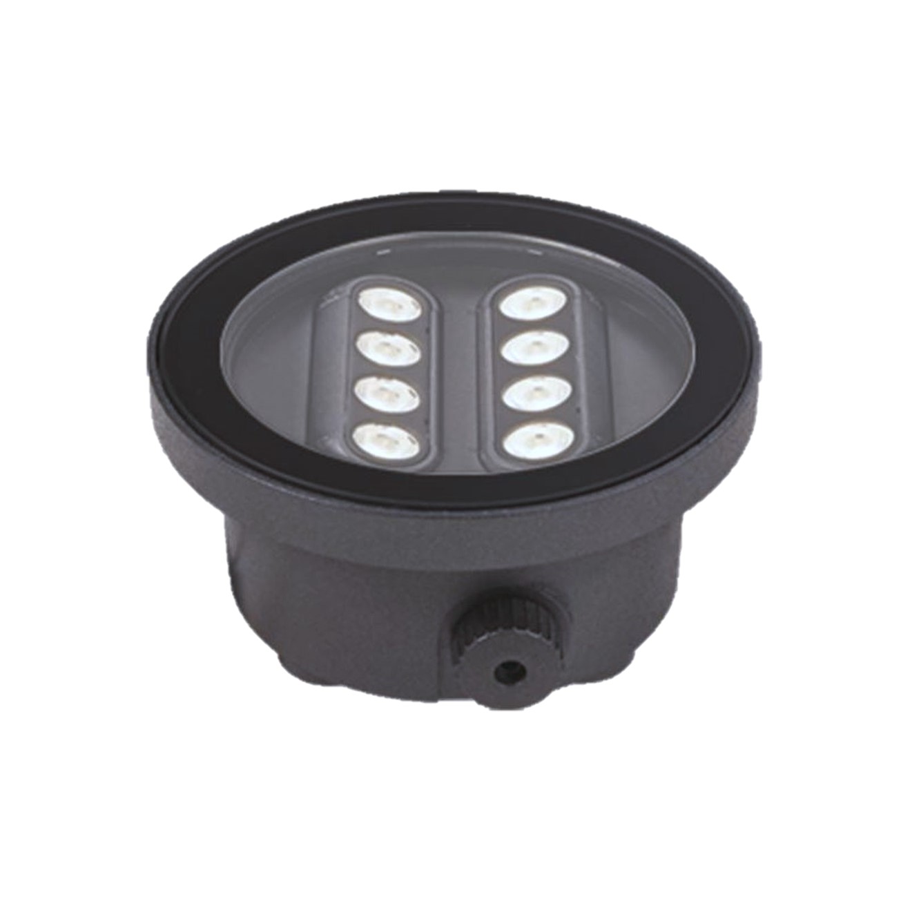 Al entender las necesidades para el control de la emisión de luz en proyectos arquitectónicos, se desarrolla la familia de uplights empotrados en piso, caracterizada por contar con cuerpos ópticos dirigibles de forma independiente mediante perillas integradas en el cuerpo de cada producto, con lo cual es posible ajustar el haz luminoso dada la intención de enfocar algún objeto o regular el efecto deseado al tener iluminación rasante en superficies verticales, de igual manera para que el producto se integre al espacio de la forma mas discreta posible, el diseño del cuerpo de los luminarios carece de marcos, por lo cual se refuerza el protagonismo que tiene la arquitectura por encima de los recursos que la realzan.